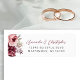 The left-hand border of this romantic modern wedding invitation return address label features a watercolor floral bouquet in shades of burgundy and dusty rose. The customisable text combines elegant burgundy handwriting script and charcoal grey sans serif font on a white background. Ideal for a fall or winter wedding.