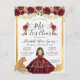 Floral Burgundy Red Maroon Princess Gown Dress Gold Glitter Sparkle Charra Mini Little Girl Princess Cowboy Boots Horse 15th Birthday Quinceanera Invitation