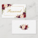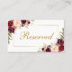 Watercolor Floral Burgundy Gold Wedding Reserved Flat Table Place Card