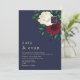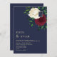 Elegant and timeless, this floral burgundy and navy blue wedding invitation features a sophisticated design with lush red and white roses paired with deep green leaves. The rich navy blue background creates a luxurious contrast, while the gold accents add a touch of elegance. Perfect for formal weddings, this invitation is easy to customise with your wedding details, making it a beautiful choice for your special day.