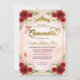 Floral Burgundy Pink Gold Crown Quinceañera Invitation
