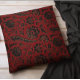 Floral Burgundy Red Black Flowers Bohemian Damask Cushion