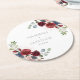 Floral Burgundy Script Chic Wedding Round Paper Coaster