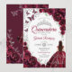 Floral Burgundy Silver Quinceanera Invitation