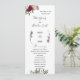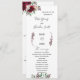 Wedding program card with burgundy & greenery floral, little doodles and calligraphy names.