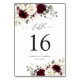 Floral Burgundy White Gold Elegant Table Number