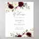 Floral Burgundy White Gold Wedding Welcome Sign. Elegant Floral White Red Burgundy Greenery Wedding Ceremony Reception Welcome Sign