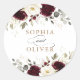 Floral Burgundy White Greenery Gold Leaves Envelope Seal Sticker. Elegant Red Burgundy Merlot Wedding Envelope Sticker. Modern Calligraphy Script Wedding Seal Sticker