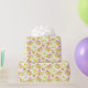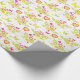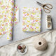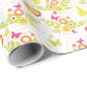 Everyday spring patterned wrap ideal for birthdays or other occasions. Wrapping paper in a bright fresh lime yellow green and white featuring pretty flowers butterflies and hearts in purple pink and spring green yellows . Uniquely designed pattern by Sarah Trett.