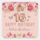 Floral Butterflies Pink Happy 16th Birthday Square Sticker