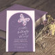 Floral Butterfly in Flight Baby Shower Invitation. The floral butterfly design is in a variety of dusty purples, pinks, and blues. The background is dusty purple with a subtle pink lattice pattern around the border. All colours (apart from the butterfly itself) can be changed and all other elements can be moved, deleted, or re-coloured, so you have the ability to create a unique invitation just for you! © Kimbellished, LLC