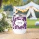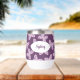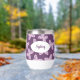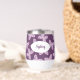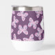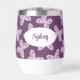 Personalised Floral Butterfly Pattern Wine Tumbler. Butterfly design in shades of pink, purple, and blue. Shown on a dark purple background, but you're able to edit to select your own background colour. Personalise with a name or other text. © Kimbellished, LLC