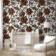 A two-tone brown, copper, bronze and white vintage floral flower and tendril inspired wall mural based on the Byzantine style. This timeless and elegant summer / spring inspired illustration will instantly transform any room into a timeless and classic feature. Bring the outdoors, indoors, with this muted and stately country seamless repeating design. This old fashioned vintage graphic is ideal for any living room; bathroom or bedroom that needs a refresh or touch of elegance. Suited to country manors, homes and business environments.