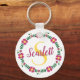 Floral Calligraphy Cursive Script Name Monogrammed Key Ring