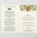 The image on front is a beautiful image of the Betrothal of Mary and St. Joseph inlaid in a gold frame of the holy rosary with accented with white flowers. Above the prayer for the bride and groom on the back of the program are the three hearts of Jesus, Mary, & St. Joseph.