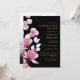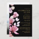 This black and gold elegant pink floral celebration of life and remembrance invitation can be personalised with your information in classic typography and a photo of the loved one on the reverse. Designed by Thisisnotme©