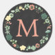 FLORAL CHALKBOARD MONOGRAM CLASSIC ROUND STICKER