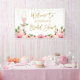 This bridal shower backdrop features a bold watercolor floral arrangement in various shades of pink , a champagne glass and some faux gold glitter text. The images are on separate lays so you can resize and move items around if need be.