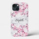 This pretty phone case for her features pink cherry blossoms on a white light grey marble background. Customise it with your name. For women who love flowers and floral Asian designs. The silver foil background gives the design a modern touch.