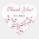 Floral Cherry Blossom Pink White Custom Thank You Heart Sticker