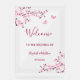 This elegant wedding welcome sign features beautiful pink cherry blossoms and two cute butterflies on a transparent white background.