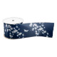 Floral Cherry Blossoms Navy Blue White Satin Ribbon