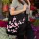 picnic, holiday trips, and so on. The Asian themed pink cherry blossom on the black background are a sight to behold and add a touch of exclusivity and style. You may carry such attractive looking bag to complement your outfit and overall personality.