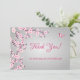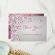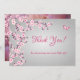 This baby shower thank you card features pink cherry blossom branches on a grey background.