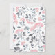 Romantic wedding invitation with pink dandelion and grey leaves falling from the top with a glam white pattern on the back.