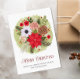 Send warm holiday wishes with this elegant Merry Christmas card featuring a beautiful festive floral arrangement. Adorned with poinsettias, pine cones, white anemones, and winter foliage, this design offers a sophisticated touch to your seasonal greetings. Customise with your family name for a truly personal touch.