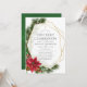 Trendy rustic christmas first holy communion invitation with gold geometric frame and handwriting typography featuring sleigh bells, poinsettia flowers, holly, mistletoe and pine.