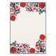 This Floral Colorful Botanical Flowers Spanish Wedding Table Number design showcases bold red florals, arranged in a balanced composition at the top and bottom edges, creating an inviting frame for text in the center. The flowers are complemented by stylized stems and leaves in shades of black, pink, blue, and green, adding depth and vibrancy to the overall look. The simplicity of the background highlights the rich, saturated colors of the floral elements, giving the design a lively yet elegant folk-inspired appeal.