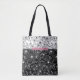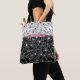 Floral Colour Block Pattern Black White with Name Tote Bag
