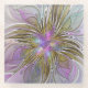 Floral Colourful Abstract Fractal With Pink & Gold Glass Coaster