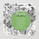 Stylish square special occasion invitation, with black and white floral doodle art, like popular colouring pages, and a round green text area. Personalise all the text for your event. Matching products are available.