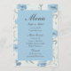 Set the scene for an unforgettable reception with this floral country garden dusty blue wedding menu. Delicate watercolor blossoms and romantic botanical details bring cottagecore charm to your table setting, while soft vintage tones add timeless elegance. Perfect for spring garden celebrations, rustic countryside weddings, and vintage chic receptions, this menu design captures the warmth of the season—whether under twinkle lights or in a blooming outdoor venue.