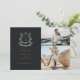 Elegant and rustic hand painted watercolor design by Shelby Allison featuring a family crest style shield and monogram surrounded by intricate flower and leaf details.