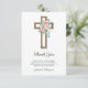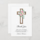 Watercolor Floral Religious Cross Baptism Thank You Card. Matching items available.
