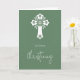 A fern green christening card with a white floral cross. Part of the Floral Cross Christening Collection.