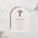 Floral Cross Modern Catholic Custom Photo Baptism Invitation