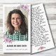 A simple yet elegant tribute to your loved one. The front showcases a delicate floral design, while the back allows you to customise the text. Easily personalise with your chosen words, change the name, and date, and cherish the memories with a custom photo. Create a unique and thoughtful memorial with this simple and customisable funeral prayer card.