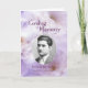 A beautiful photo framed "In Loving Memory" keepsake card with lavender floral background. A simple quote is printed inside, but you can change it with your own text, or delete it.