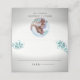 A modern and simple invitation with a picture in a turquoise flower wreath. The background is gradient white and grey