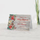 Merry Christmas for dad and stepmom card with rustic winter foliage and watercolor flowers with a country wood background.