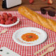 A modern and fresh looking Paper Plate with an orange Gerbera Daisy for your Bachelorette Party. There are other matching items for you great day available.