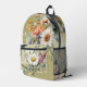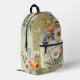 Pretty floral backpack in shades of olive green. Bouquets of daisies and wildflowers decorate all parts of this large pack with a smaller zipper bag in the front. Perfect for any nature lover who needs to carry any type of paraphernalia.