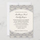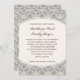 The classic beauty of a damask pattern creates an elegant frame around your wording on this vintage lace inspired floral damask pattern. The frame is embellished with a pearl dotted border. This elegant design has a light cream colour with a grey periwinkle or dusty lavender background. The back of the invitation also has the pattern. If you need this space for more information, you can delete the pattern to reveal a solid colour background.