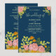 Floral Dark Navy Blue Wedding Botanic Invitation
