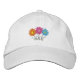 This chino twill cap embroidered with a floral design is great for the beach, golf course or while boating to name a few. Has a cloth strap and an antique brass slide buckle closure with tuck-in grommet, so it fits well on anyone