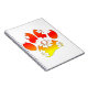 Cute cartoon style dog paw print in shades of yellow, orange and red.